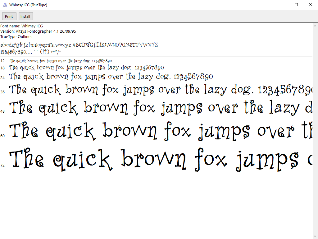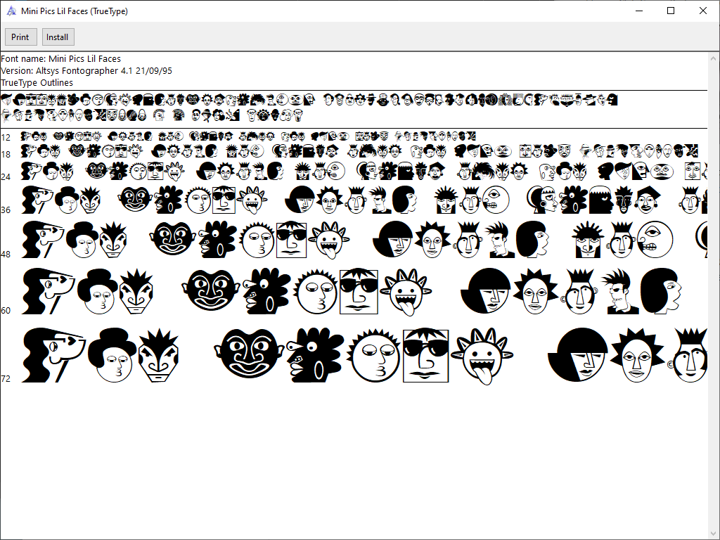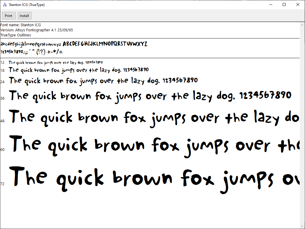 Typefaces are in a variety of formats, but all are in at least something Windows 10 can take natively. I actually really like the Stanton ICG font–so 90s. That’s Setter’s handwriting right there. (Lil Faces, meanwhile, is horrific.)
